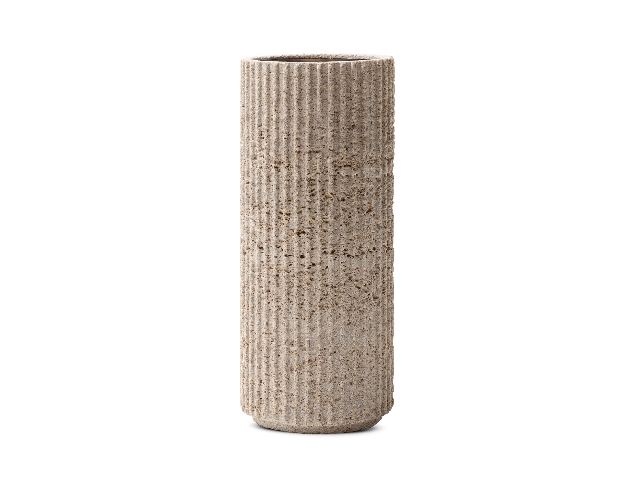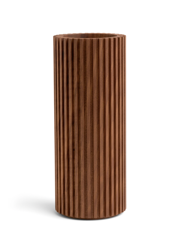 With a glass cylinder so you can easily keep real flowers in the vases.